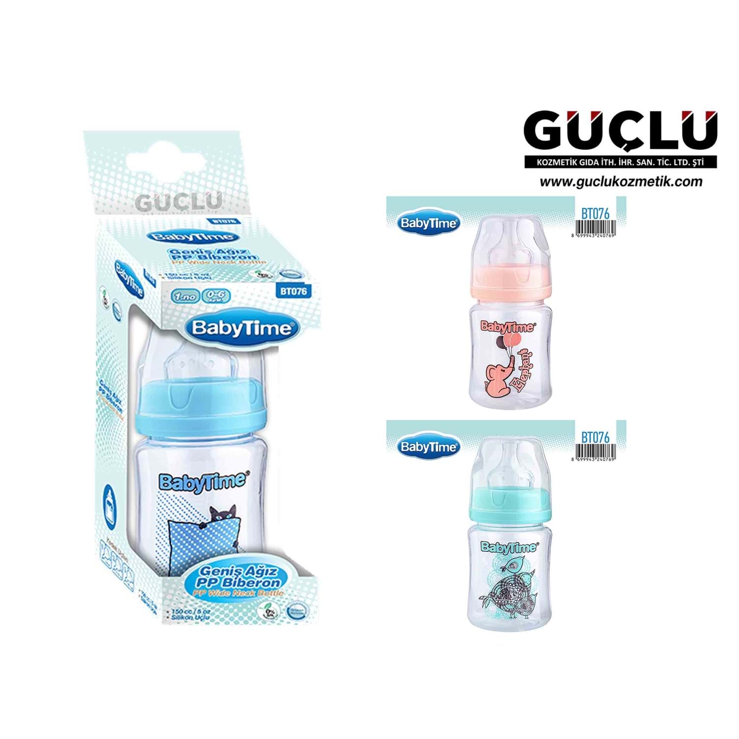 BABYTİME PP BİBERON GENİŞ AĞIZ (SİLİKON UÇLU) 150ML BT076*12Lİ